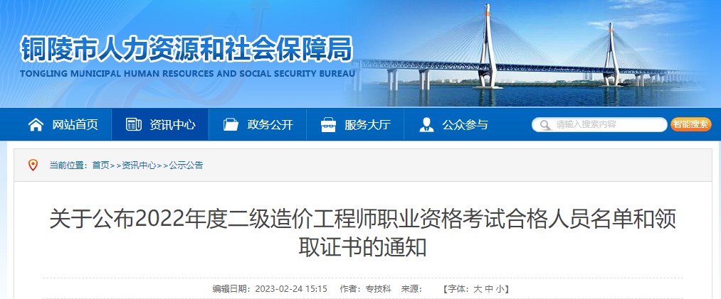 根據(jù)省人社廳人事考試院通知,現(xiàn)將我市2022年度二級造價(jià)工程師職業(yè)資格考試合格人員名單予以公布,證書申領(lǐng)方法如下: