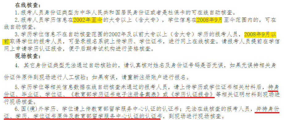 身份或?qū)W歷、學(xué)位信息無法通過自動核查的,請?jiān)趫?bào)名時(shí)上傳相關(guān)信息掃描件,以備后期核查。