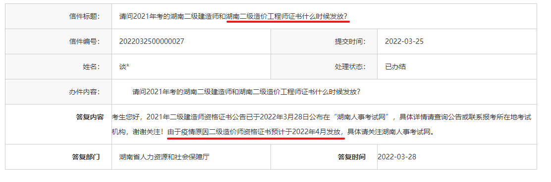 官方回復(fù):由于疫情原因二級(jí)造價(jià)師資格證書(shū)預(yù)計(jì)2022年4月發(fā)放。