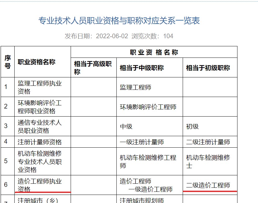 東莞市二級(jí)造價(jià)工程師職業(yè)資格相當(dāng)于初級(jí)職稱