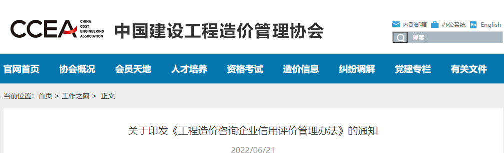 為適應(yīng)行業(yè)新發(fā)展形勢(shì),貫徹落實(shí)國務(wù)院、住房和城鄉(xiāng)建設(shè)部關(guān)于社會(huì)信用體系建設(shè)的工作部署,推進(jìn)工程造價(jià)咨詢行業(yè)信用體系建設(shè),更加科學(xué)和規(guī)范的開展工程造價(jià)咨詢企業(yè)信用評(píng)價(jià)工作,規(guī)范工程造價(jià)咨詢企業(yè)從業(yè)行為,我協(xié)會(huì)對(duì)2019年發(fā)布《工程造價(jià)咨詢企業(yè)信用評(píng)價(jià)管理辦法》進(jìn)行了修訂,現(xiàn)將新修訂后的《工程造價(jià)咨詢企業(yè)信用評(píng)價(jià)管理辦法》印發(fā)給你們。