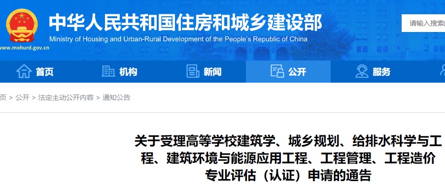 住建部關(guān)于受理高等學(xué)校工程造價 專業(yè)評估(認(rèn)證)申請的通告