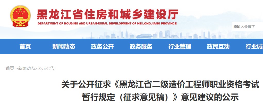 征求《黑龍江省二級(jí)造價(jià)工程師職業(yè)資格考試暫行規(guī)定征求意見稿》意見