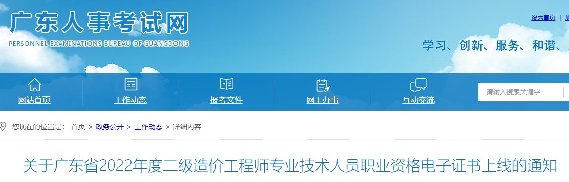 關(guān)于廣東省2022年度二級(jí)造價(jià)工程師專業(yè)技術(shù)人員職業(yè)資格電子證書上線的通知
