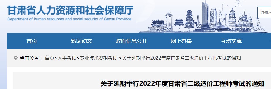 關于延期舉行2022年度甘肅省二級造價工程師考試的通知