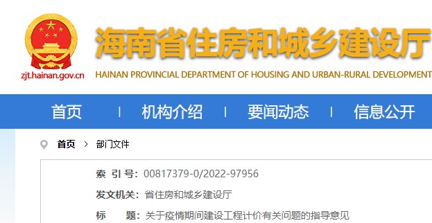 海南省住房和城鄉(xiāng)建設(shè)廳關(guān)于疫情期間建設(shè)工程計(jì)價(jià)有關(guān)問題的指導(dǎo)意見