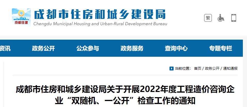 成都市住房和城鄉(xiāng)建設(shè)局關(guān)于開(kāi)展2022年度工程造價(jià)咨詢企業(yè)“雙隨機(jī)、一公開(kāi)”檢查工作的通知