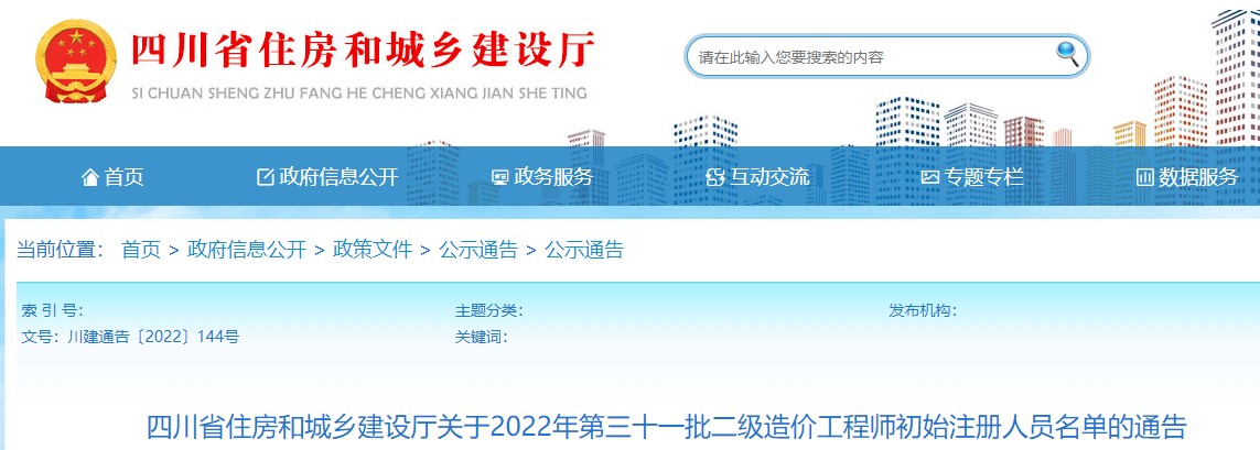 四川省住房和城鄉(xiāng)建設(shè)廳關(guān)于2022年第三十一批二級(jí)造價(jià)工程師初始注冊(cè)人員名單的通告