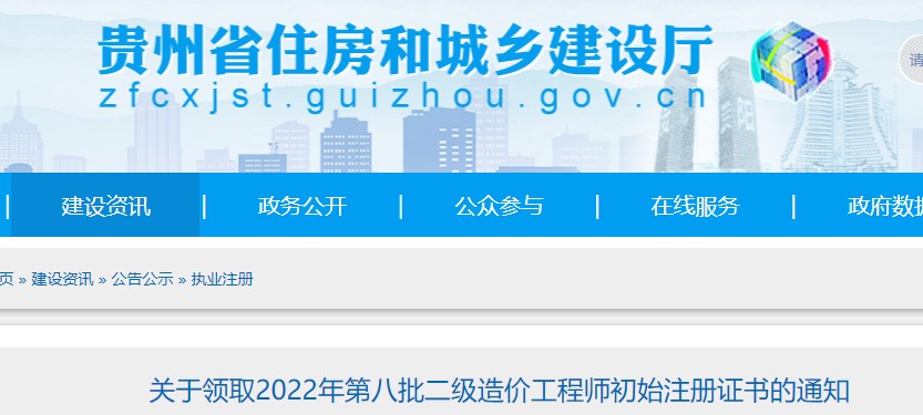 貴州?關(guān)于領(lǐng)取2022年第八批二級造價(jià)工程師初始注冊證書的通知