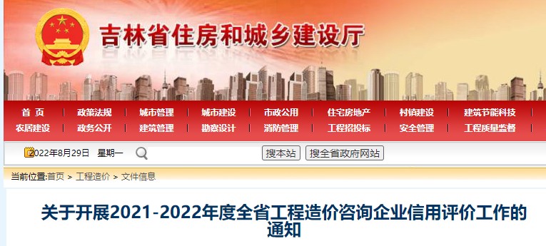 吉林省關(guān)于開(kāi)展2021-2022年度工程造價(jià)咨詢企業(yè)信用評(píng)價(jià)工作通知