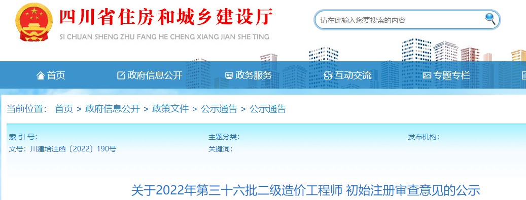 四川?關(guān)于2022年第三十六批二級(jí)造價(jià)工程師初始注冊(cè)審查意見的公示