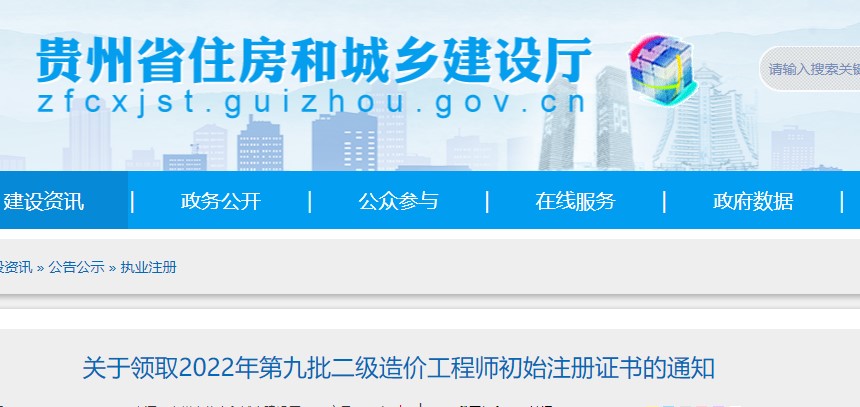 貴州省?關(guān)于領(lǐng)取2022年第九批二級(jí)造價(jià)工程師初始注冊(cè)證書的通知