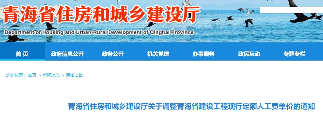 青海省住建廳關(guān)于調(diào)整青海省建設(shè)工程現(xiàn)行定額人工費單價的通知