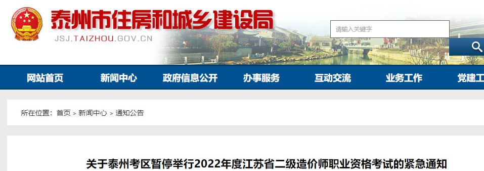 關(guān)于泰州考區(qū)暫停舉行2022年度江蘇省二級造價師職業(yè)資格考試的緊急通知