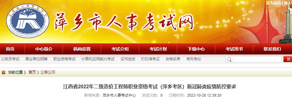 萍鄉(xiāng)市2022年二級造價工程師職業(yè)資格考試新冠肺炎疫情防控要求