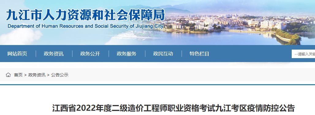 九江市2022年度二級造價工程師職業(yè)資格考試疫情防控公告