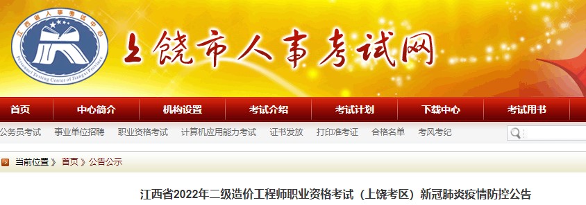 江西省2022年二級(jí)造價(jià)工程師職業(yè)資格考試(上饒考區(qū))新冠肺炎疫情防控公告