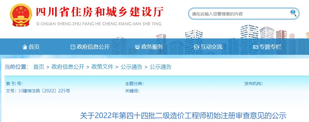 四川關(guān)于2022年第四十四批二級造價工程師初始注冊審查意見的公示