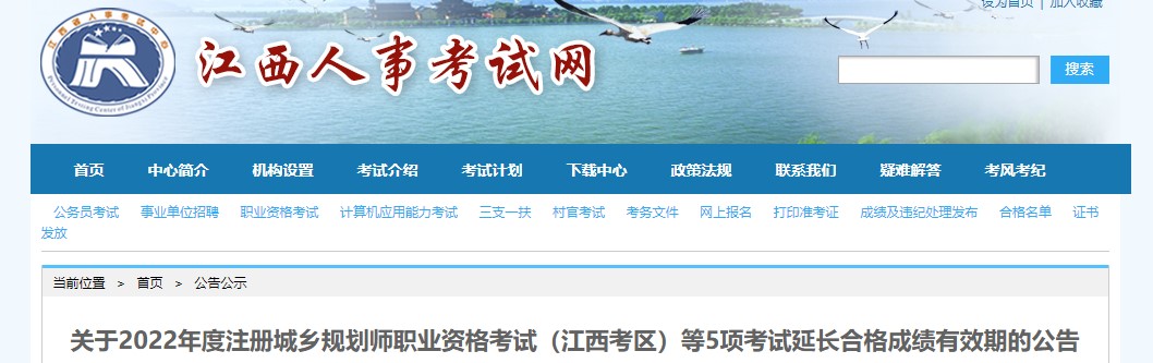 關(guān)于2022年度注冊(cè)城鄉(xiāng)規(guī)劃師職業(yè)資格考試(江西考區(qū))等5項(xiàng)考試延長(zhǎng)合格成績(jī)有效期的公告