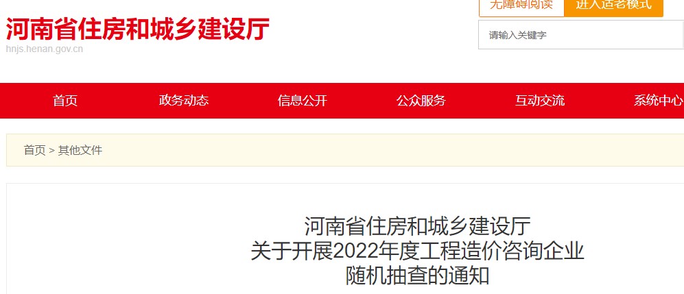 河南住建廳關(guān)于開展2022年度工程造價咨詢企業(yè)隨機抽查的通知
