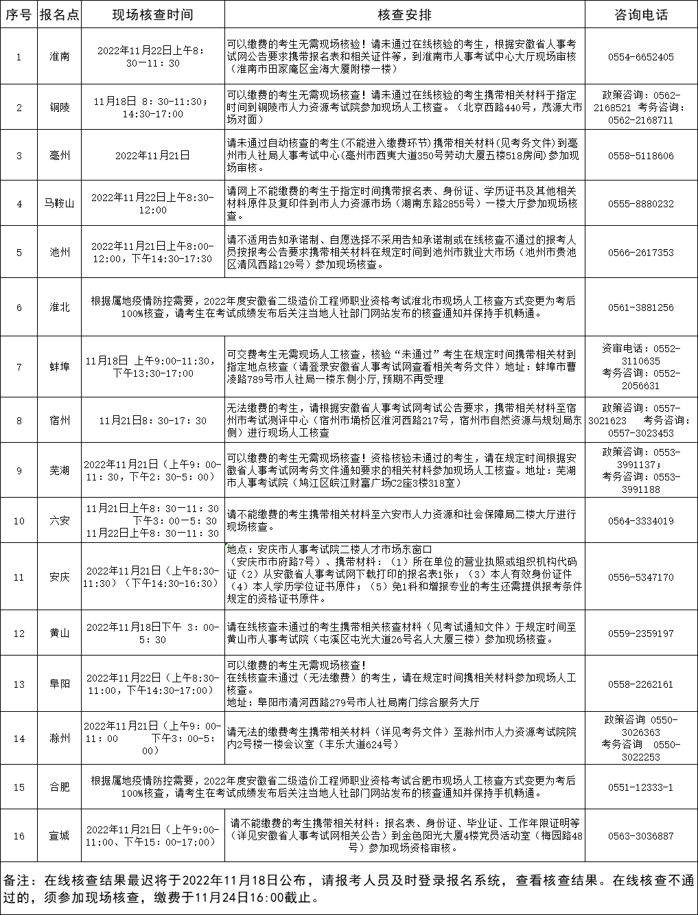 安徽省2022年度二級(jí)造價(jià)師職業(yè)資格考試現(xiàn)場(chǎng)人工核查安排
