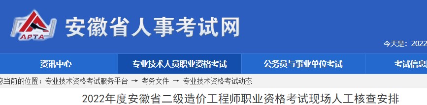 2022年度安徽省二級(jí)造價(jià)工程師職業(yè)資格考試現(xiàn)場(chǎng)人工核查安排