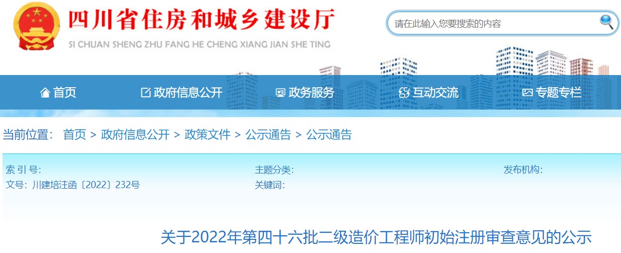 四川省?關(guān)于2022年第四十六批二級造價工程師初始注冊審查意見的公示