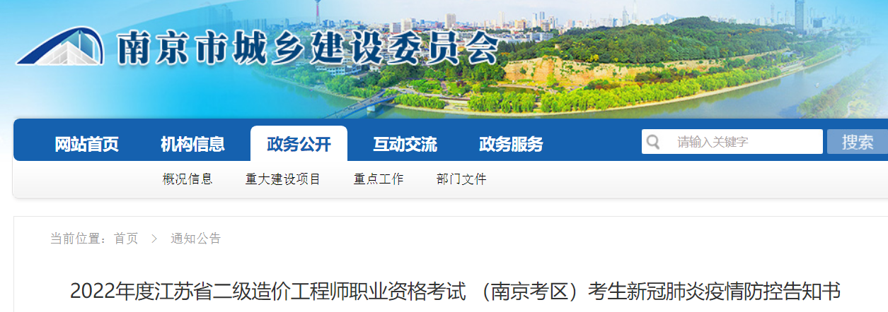 所有考生考前應(yīng)及時(shí)查閱并遵守南京市疫情防控政策,網(wǎng)址:()。考生考前請密切關(guān)注江蘇省二級造價(jià)工程師職業(yè)資格考試報(bào)名官方網(wǎng)址(),如有新的調(diào)整和新的要求,將通過官網(wǎng)另行告知。