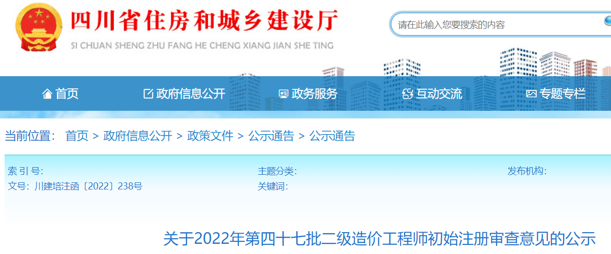 四川?關(guān)于2022年第四十七批二級造價工程師初始注冊審查意見的公示
