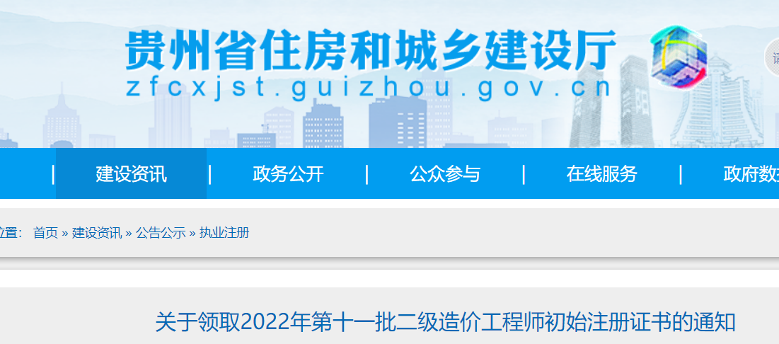 貴州省關(guān)于領(lǐng)取2022年第十一批二級造價工程師初始注冊證書的通知