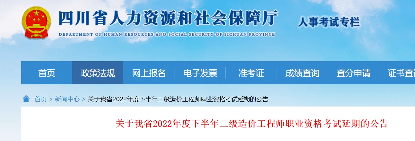 關(guān)于我省2022年度下半年二級(jí)造價(jià)工程師職業(yè)資格考試延期的公告