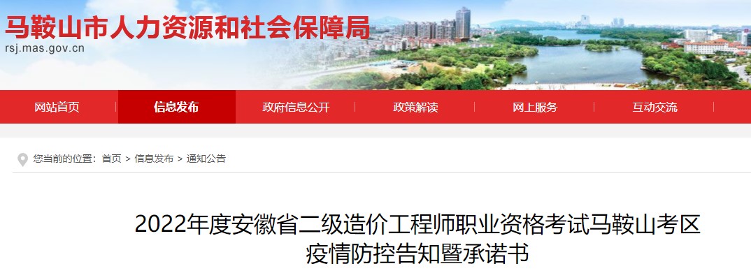 2022年度安徽馬鞍山二級(jí)造價(jià)工程師職業(yè)資格考試疫情防控告知暨承諾書