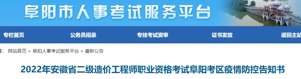 2022年安徽省二級造價(jià)工程師職業(yè)資格考試阜陽考區(qū)疫情防控告知書