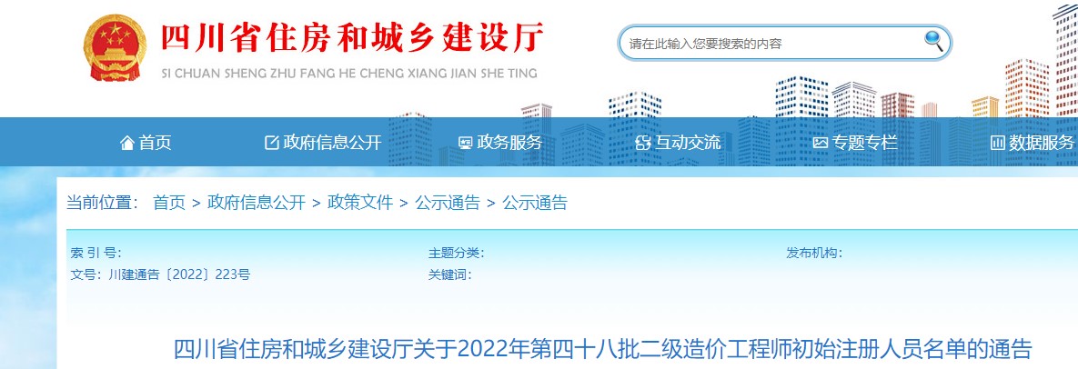 四川省住房和城鄉(xiāng)建設(shè)廳關(guān)于2022年第四十八批二級造價工程師初始注冊人員名單的通告