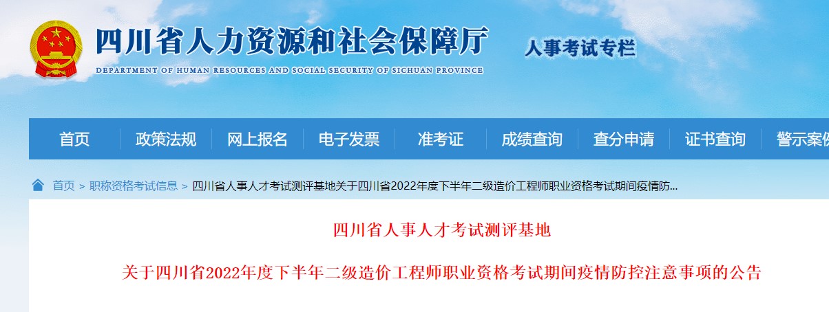 關(guān)于四川2022年度下半年二級(jí)造價(jià)工程師考試期間疫情防控注意事項(xiàng)公告