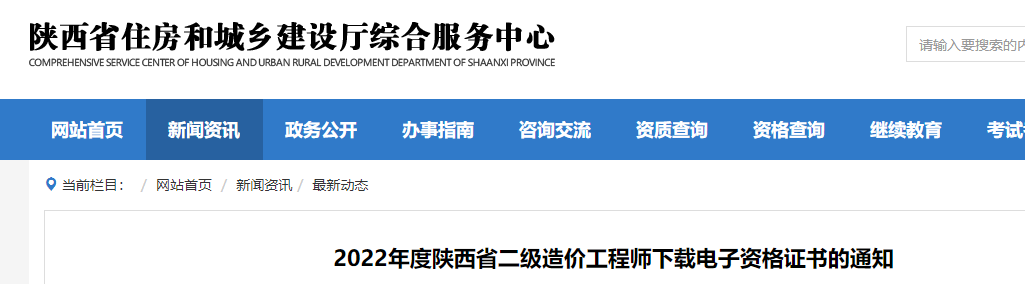 2022年度陜西省二級造價工程師下載電子資格證書的通知