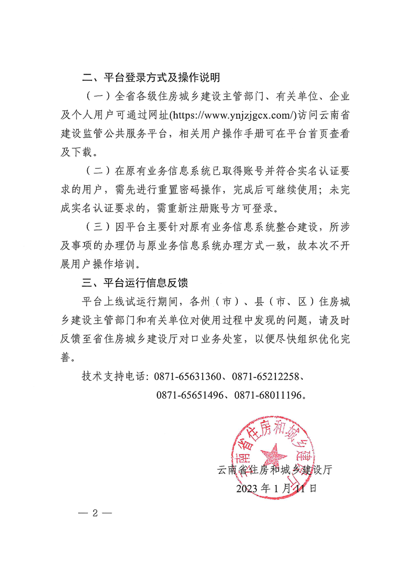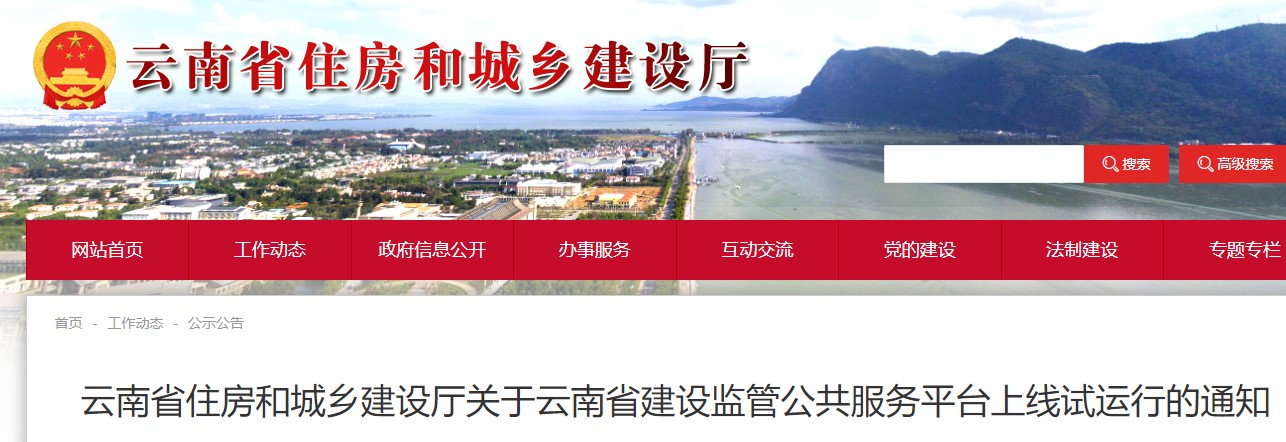 云南省住房和城鄉(xiāng)建設(shè)廳關(guān)于云南省建設(shè)監(jiān)管公共服務(wù)平臺上線試運行的通知