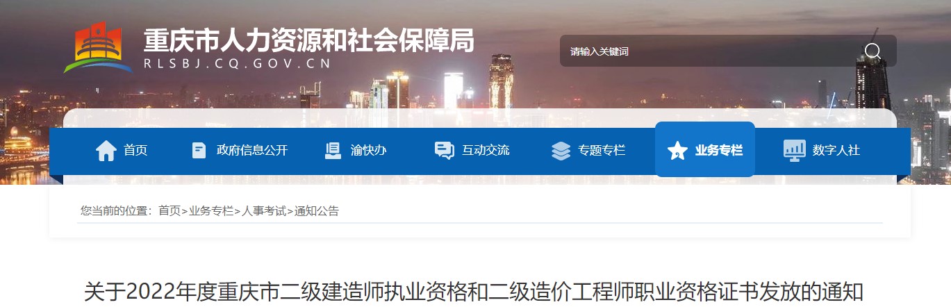 關(guān)于2022年度重慶市二級(jí)建造師執(zhí)業(yè)資格和二級(jí)造價(jià)工程師職業(yè)資格證書發(fā)放的通知