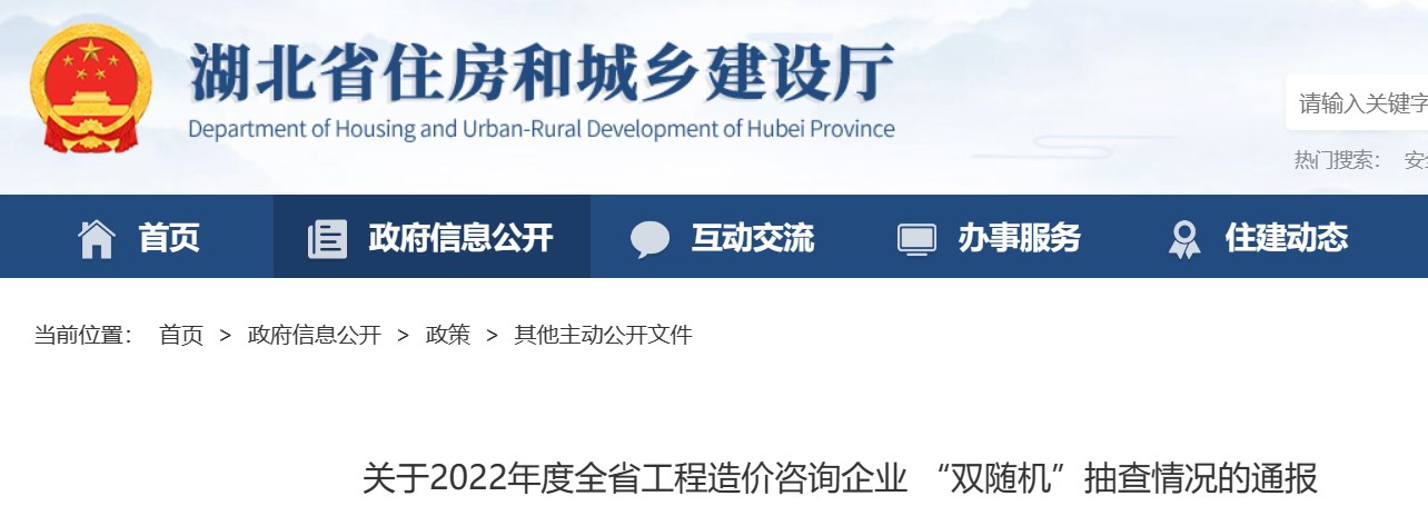 湖北生關(guān)于2022年工程造價(jià)咨詢企業(yè)”雙隨機(jī)“抽查情況的通報(bào)