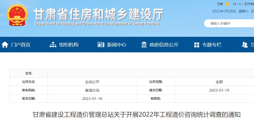 甘肅建設(shè)工程造價(jià)管理總站關(guān)于開展2022年工程造價(jià)咨詢統(tǒng)計(jì)調(diào)查的通知