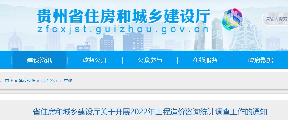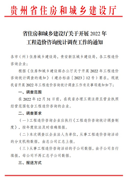 貴州省住建廳關(guān)于開展2022年工程造價咨詢統(tǒng)計調(diào)查工作的通知