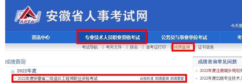 安徽省2022年二級(jí)造價(jià)師考試成績(jī)查詢?nèi)肟谝呀?jīng)開(kāi)通。