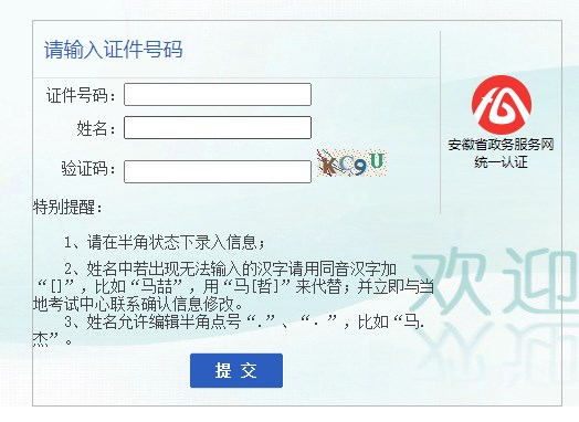 需要輸入信息:證件號(hào)碼、姓名及驗(yàn)證碼