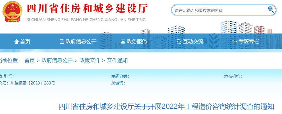 四川省住房和城鄉(xiāng)建設(shè)廳關(guān)于開展2022年工程造價(jià)咨詢統(tǒng)計(jì)調(diào)查的通知