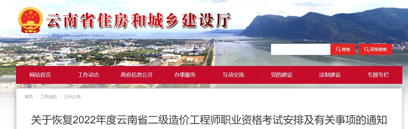 關(guān)于恢復(fù)2022年度云南省二級造價工程師職業(yè)資格考試安排及有關(guān)事項的通知