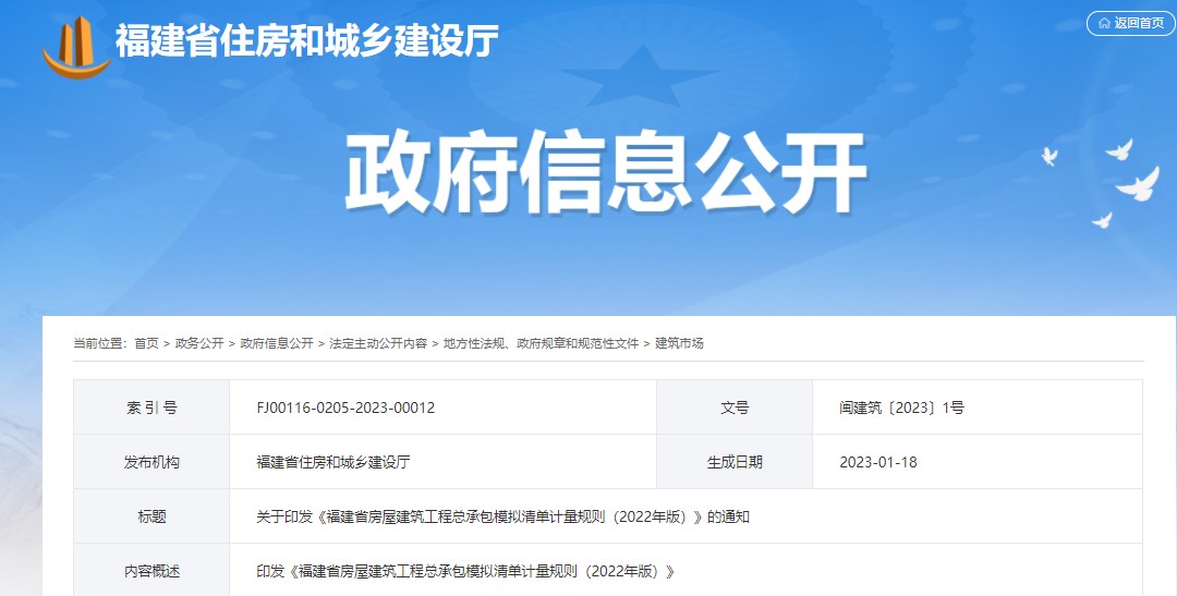福建發(fā)布《福建省房屋建筑工程總承包模擬清單計(jì)量規(guī)則(2022年版)》