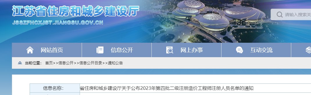 江蘇布2023年第四批二級造價師注冊人員名單,通知如下。