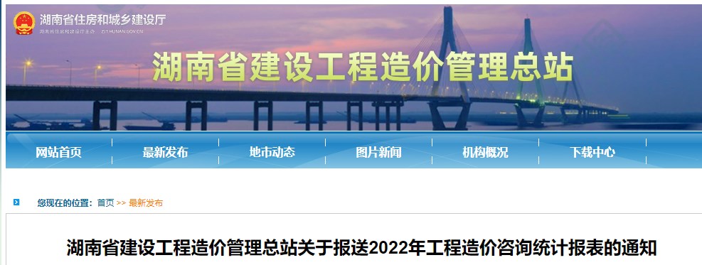湖南省建設(shè)工程造價(jià)管理總站報(bào)送2022年工程造價(jià)咨詢統(tǒng)計(jì)報(bào)表的通知