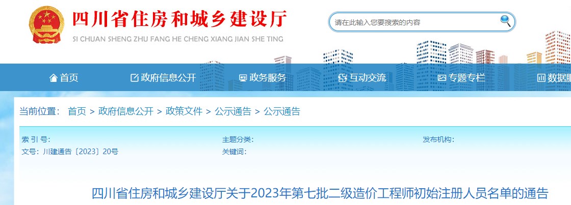 四川省住房和城鄉(xiāng)建設(shè)廳關(guān)于2023年第七批二級造價工程師初始注冊人員名單的通告