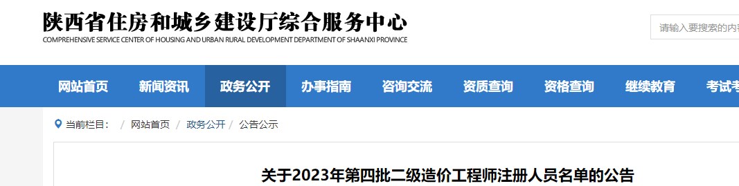 陜西省關(guān)于2023年第四批二級造價工程師注冊人員名單的公告
